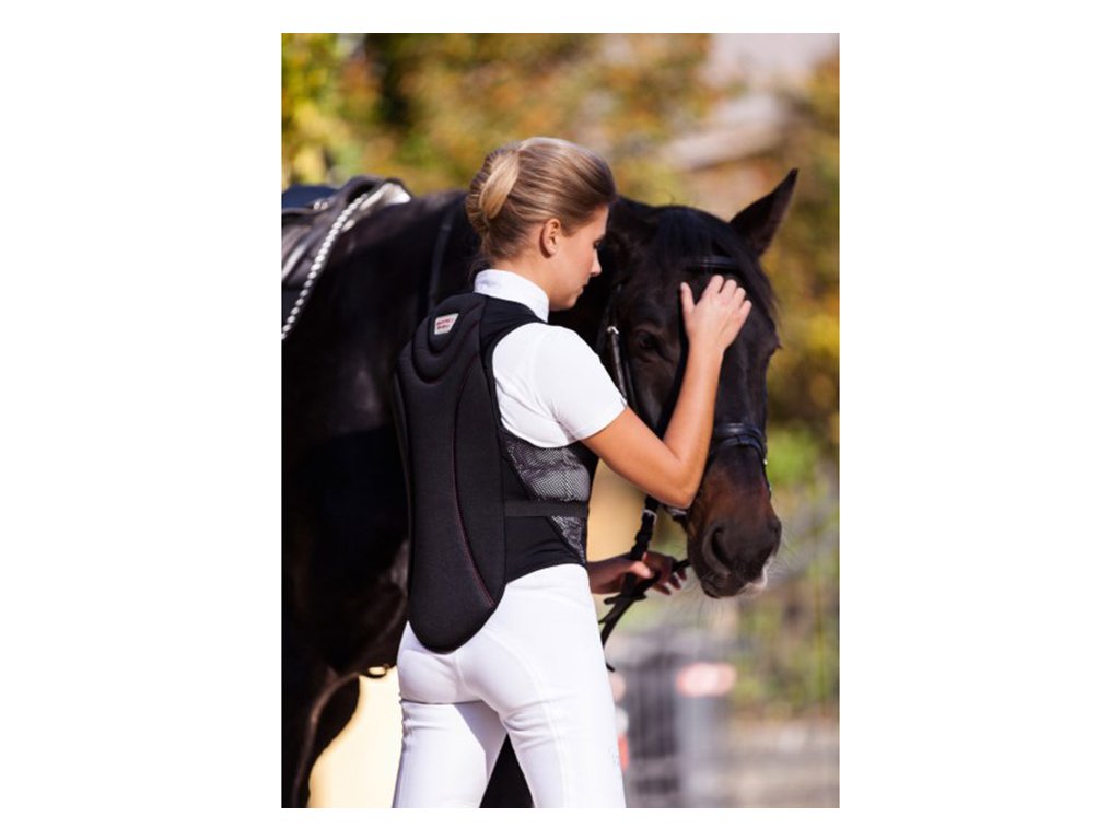 Chránič zad ve formě vesty. Lehká pro komfortní nošení. Polstrování je z vícevrstvé pěny s vysokou hustotou, která se přizpůsobí tvaru těla. Díky nízké tloušťce lze nosit i pod bundou. Elastický a prodyšný materiál se přizpůsobuje každému pohybu. Dodatečná fixace elastickým pruhem.