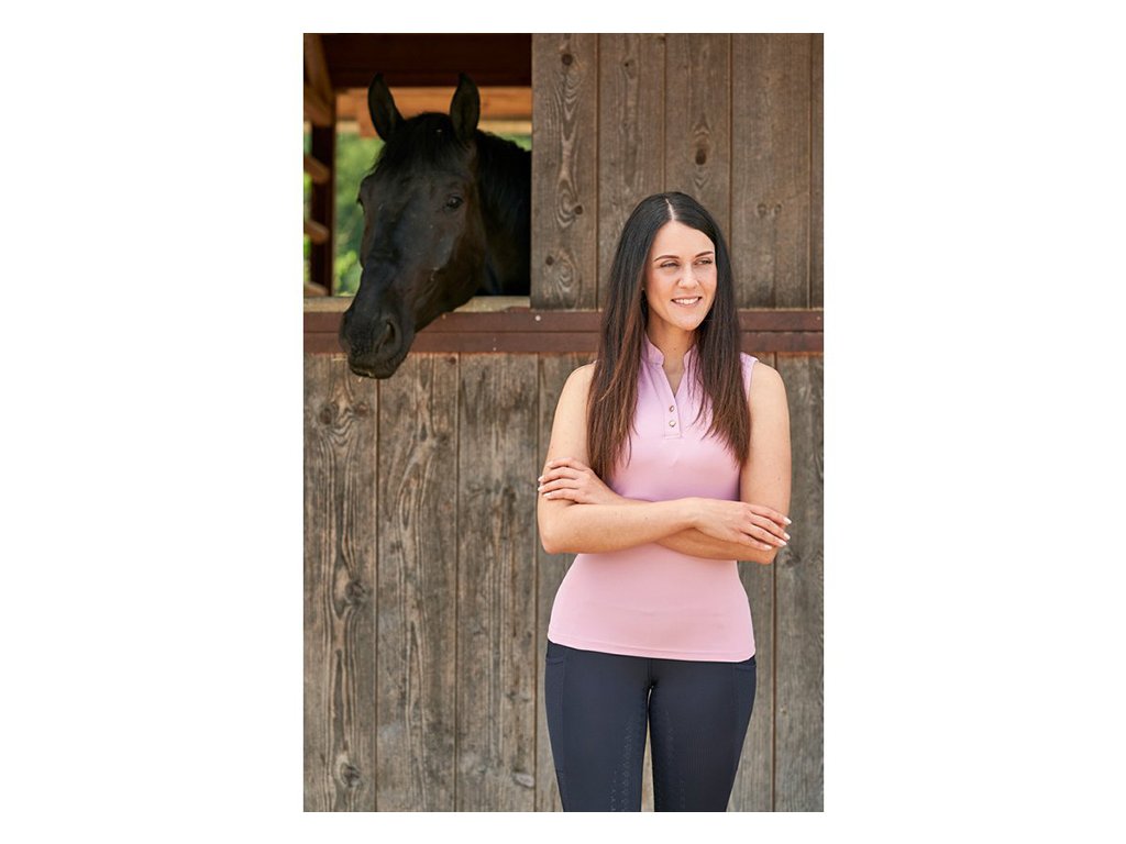 Vysoce kvalitní top z funkčního materiálu s výstřihem do V se zapínáním na knoflíčky. Díky svému složení a vložené síťovině po stranách je velice lehký, prodyšný a rychle schne. Výstřih do V se zapínáním na knoflíčky