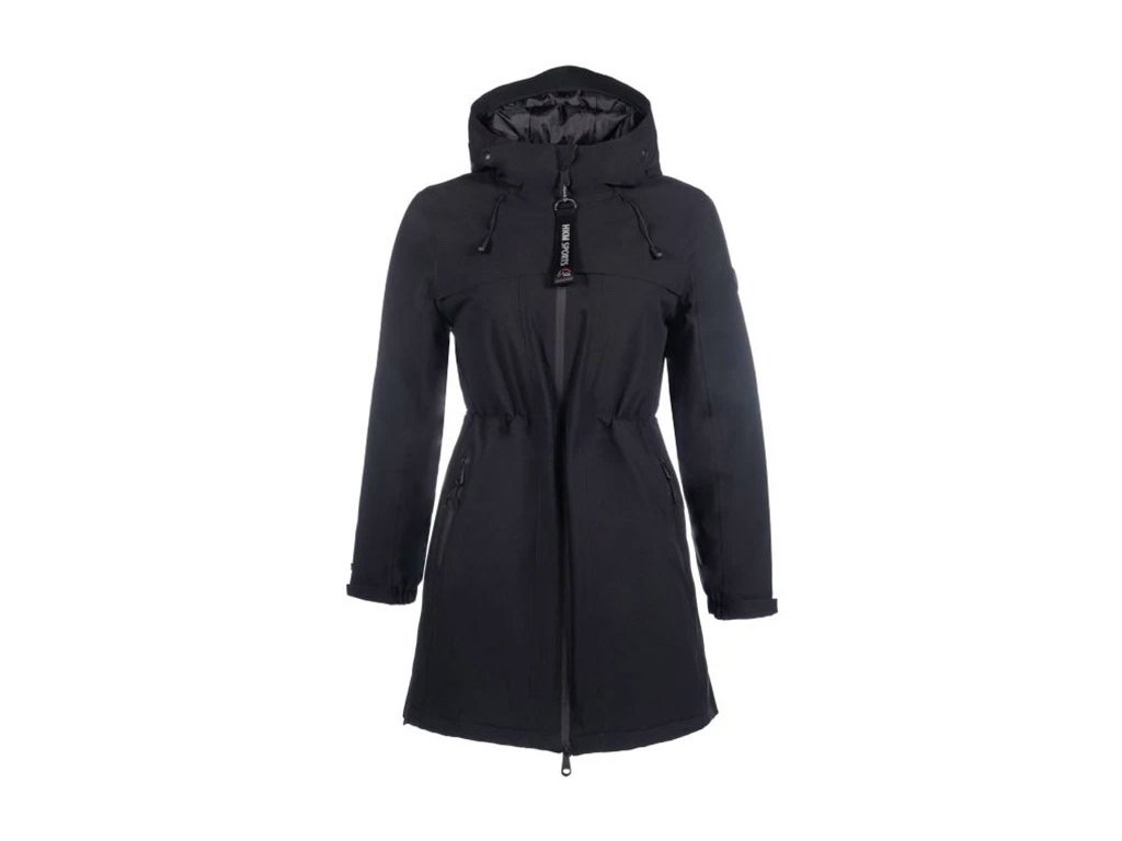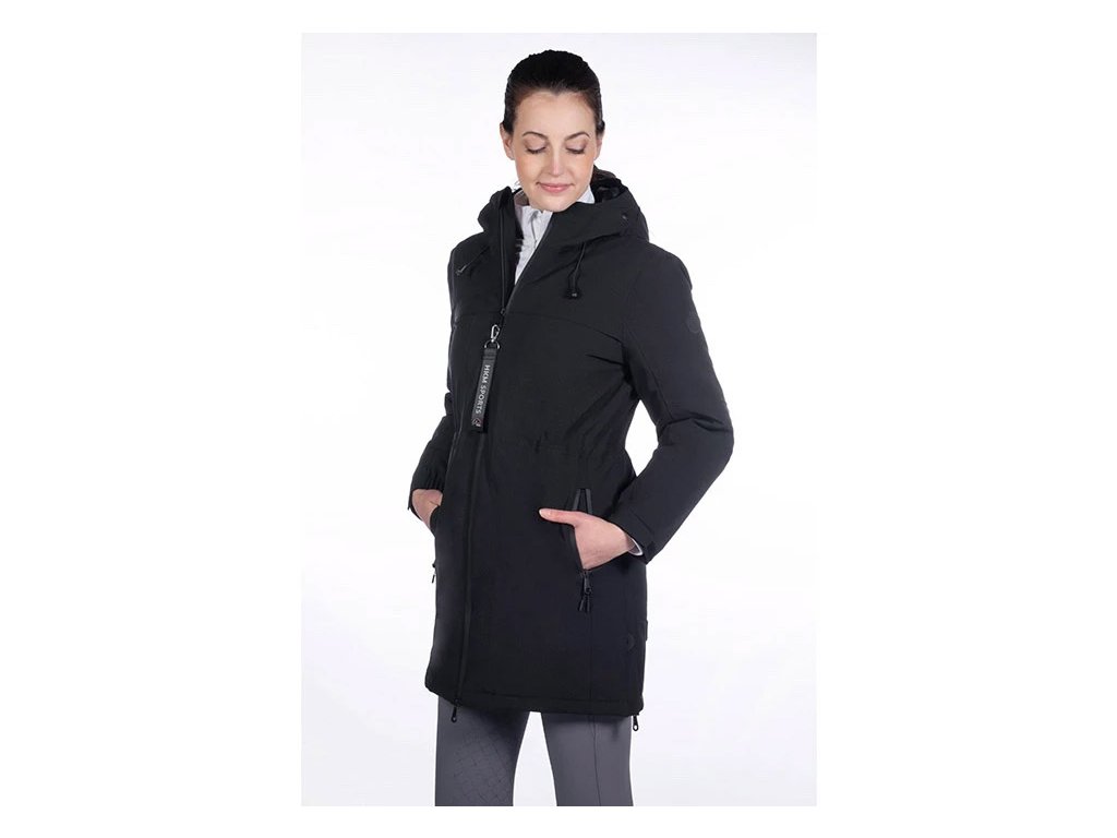 Jezdecká bunda Hillary byla pečlivě vyvinuta tak, aby ve všech ohledech splňovala požadavky pro jízdu na koni, a je ideální bundou do deštivého a chladného počasí. Bunda je zcela nepromokavá, protože má vodní sloupec 3 000 mm, a je dokonce vybavena voděodolným dvoucestným zipem včetně podlepky, která nepropouští žádnou vlhkost. Bunda má také extra nepromokavou vnější kapsu a vnitřní kapsu, která udrží cennosti v suchu. Dvoucestný zip vpředu a dlouhé jezdecké rozparky na bocích zajišťují optimální volnost pohybu na koni i mimo něj.