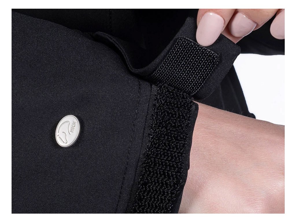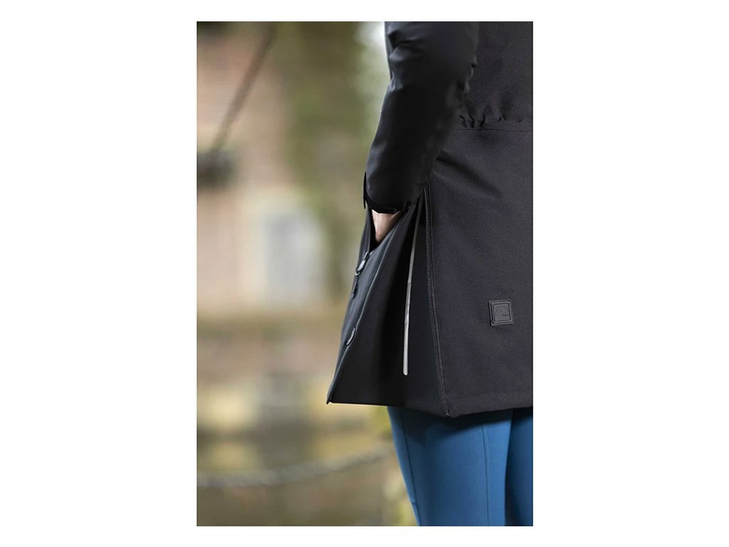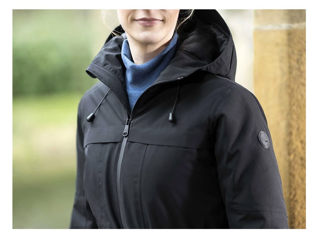Jezdecká bunda Hillary byla pečlivě vyvinuta tak, aby ve všech ohledech splňovala požadavky pro jízdu na koni, a je ideální bundou do deštivého a chladného počasí. Bunda je zcela nepromokavá, protože má vodní sloupec 3 000 mm, a je dokonce vybavena voděodolným dvoucestným zipem včetně podlepky, která nepropouští žádnou vlhkost. Bunda má také extra nepromokavou vnější kapsu a vnitřní kapsu, která udrží cennosti v suchu. Dvoucestný zip vpředu a dlouhé jezdecké rozparky na bocích zajišťují optimální volnost pohybu na koni i mimo něj.