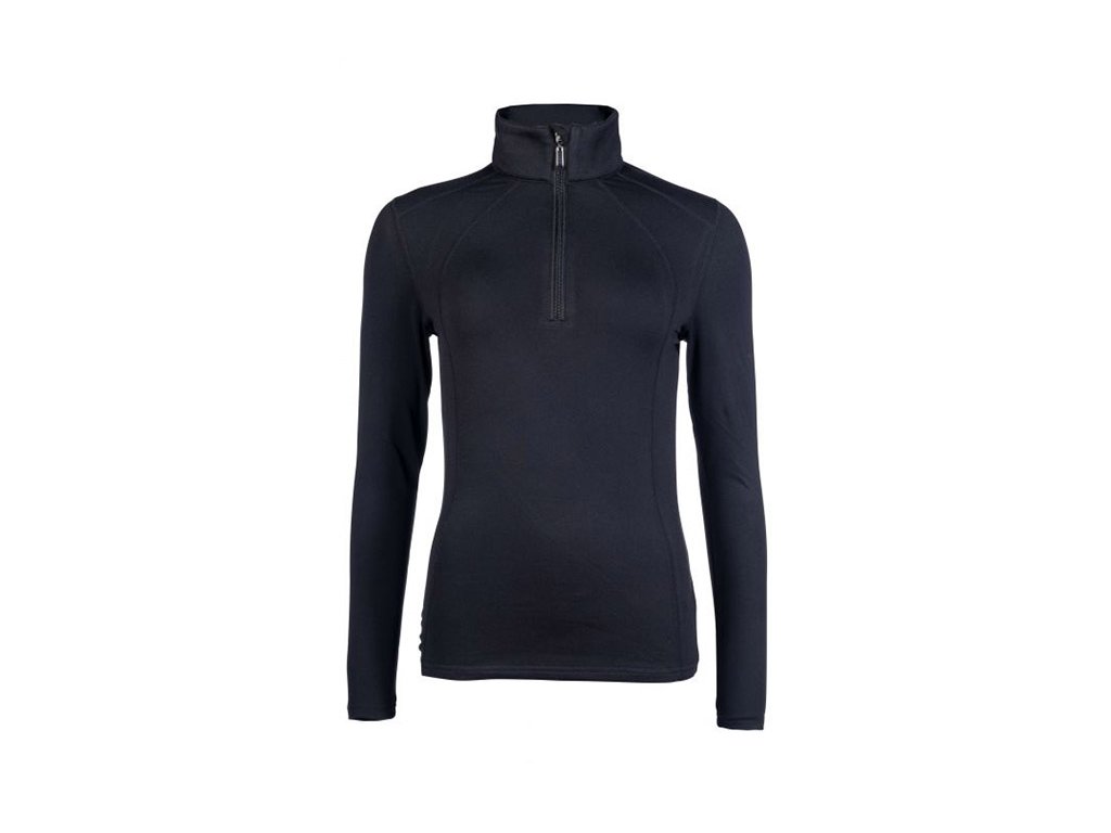 Funkční triko Mio je jednobarevná košile s dlouhým rukávem s malým stojáčkem a krátkým zipem. Funkční triko má přiléhavý střih, vysoký podíl elastanu zajišťuje optimální volnost pohybu při jízdě i ve stáji. Funkční triko Mio je prodyšné a má dobrou absorpci vlhkosti díky funkčním vláknům. Triko má vysokou tepelnou odolnost a je vhodné jako jezdecký top na zimu.