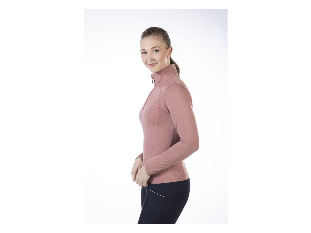 Funkční triko Mio je jednobarevná košile s dlouhým rukávem s malým stojáčkem a krátkým zipem. Funkční triko má přiléhavý střih, vysoký podíl elastanu zajišťuje optimální volnost pohybu při jízdě i ve stáji. Funkční triko Mio je prodyšné a má dobrou absorpci vlhkosti díky funkčním vláknům. Triko má vysokou tepelnou odolnost a je vhodné jako jezdecký top na zimu.