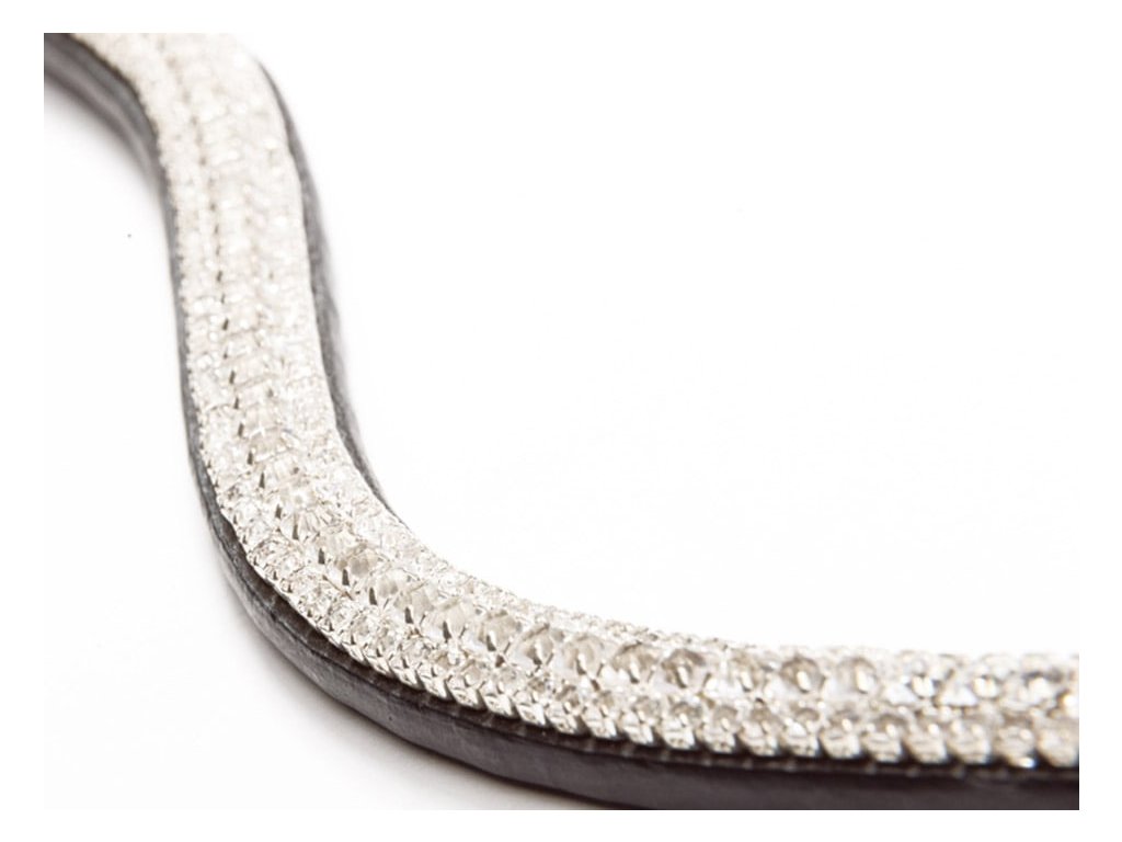 - Úzká, zakřivená čelenka s malými a velkými kamínky v elegantním rámečku.