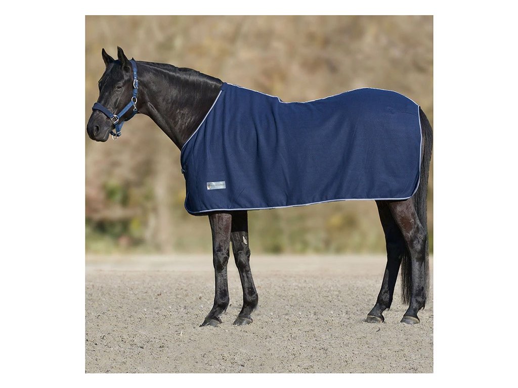 Klasická fleecová odpocovací deka s jednoduchým předním zapínáním na přezku a šňůrkou pod ocas.