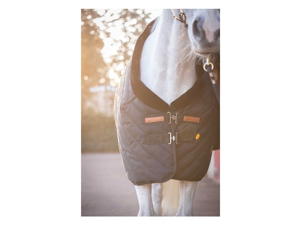 - Snadno rozpoznatelná díky diagonálnímu prošívání, poskytuje koním ve stáji silnou vrstvu tepla o hmotnosti 400 g