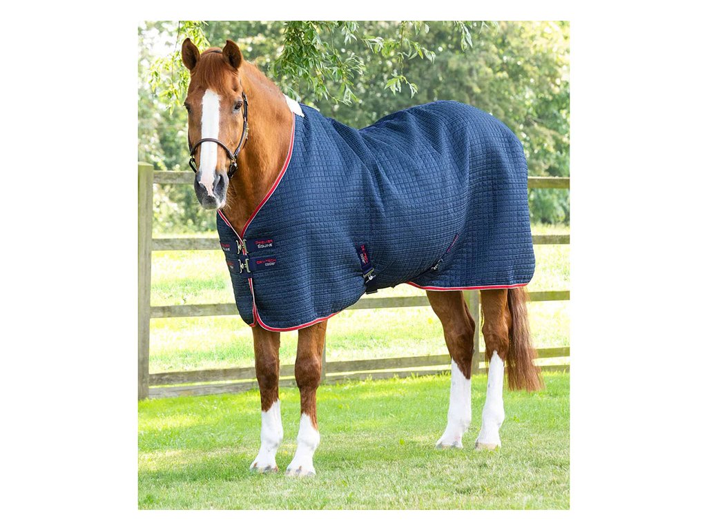 Odpocovací deka Dry-Tech Horse Cooler je vyrobená ze tří vrstev technických tkanin. Podšívka je vyrobena z lehké vaflové vazby, která je vysoce absorpční, odolná a pomáhá rychle odvádět vlhkost ze srsti Vašeho koně. Střední vrstva obsahuje termoizolační výplň, která je lehká, prodyšná a poskytuje dodatečnou ochranu před prochladnutím, pomáhá také odvádět a rozptylovat vlhkost a urychluje tak schnutí. Vnější vrstva s prošívanou vaflovou tkaninou poskytuje koním komfort a pomáhá zabránit ulpívání hoblin na povrchu deky.
