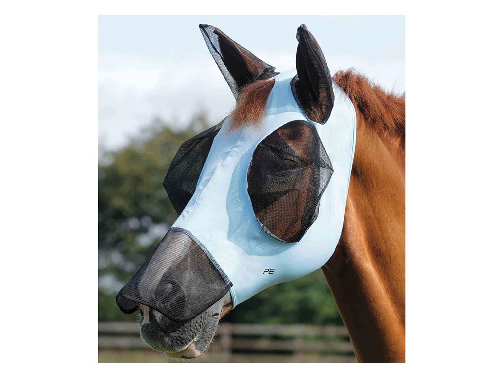 Premier Equine Maska proti hmyzu Comfort Tech Lycra s nosem světle modrá vel. S