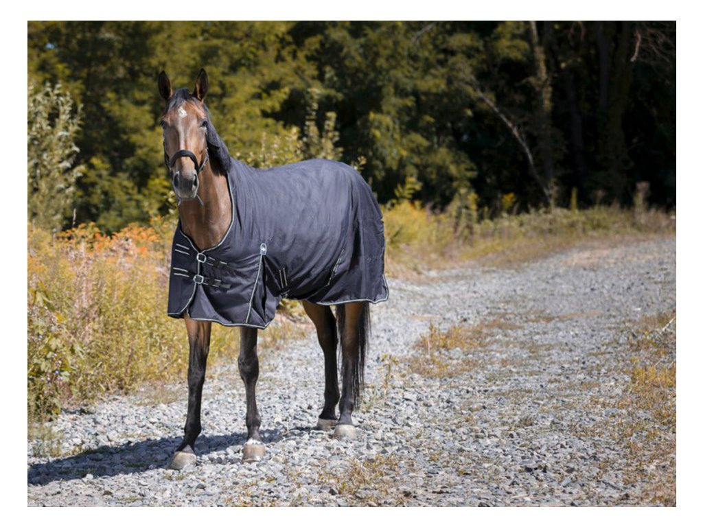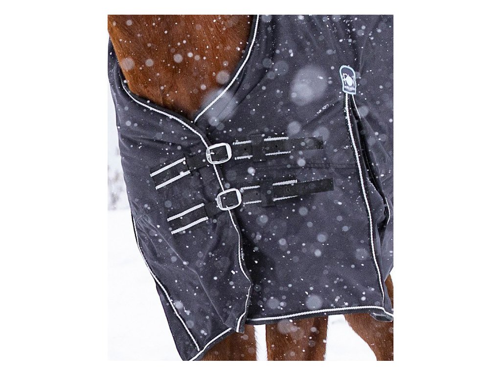 Nepromokavá deka vyrobená z polyesteru 300D s podšívkou z bavlny. Deka má vsazené komfortní klíny pro volnost v pohybu ,vypodložený kohoutek umělým beránkem. Zapínání na plecích na dvě nastavitelné přezky. Deka má křížové zapínání pod břicho, popruhy mezi zadní nohy a kryt ocasu.