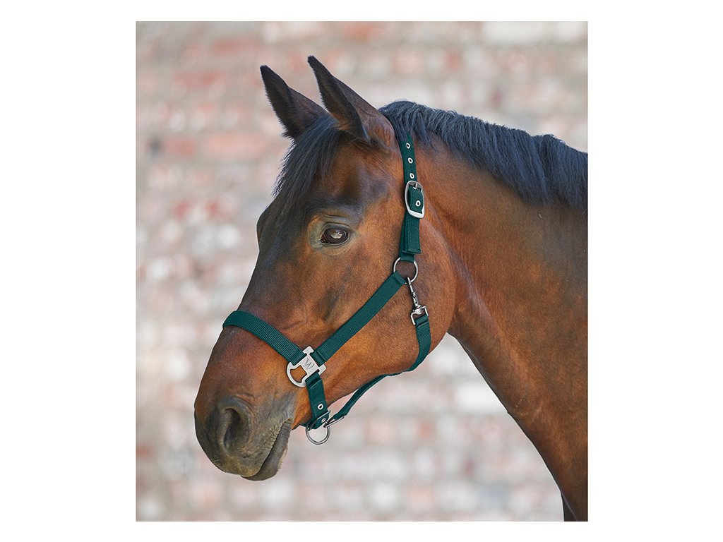 Měkce podložená ohlávka, nastavitelná do několika poloh. S matným, tmavým kováním. Nastavitelná do několika poloh u podbradního